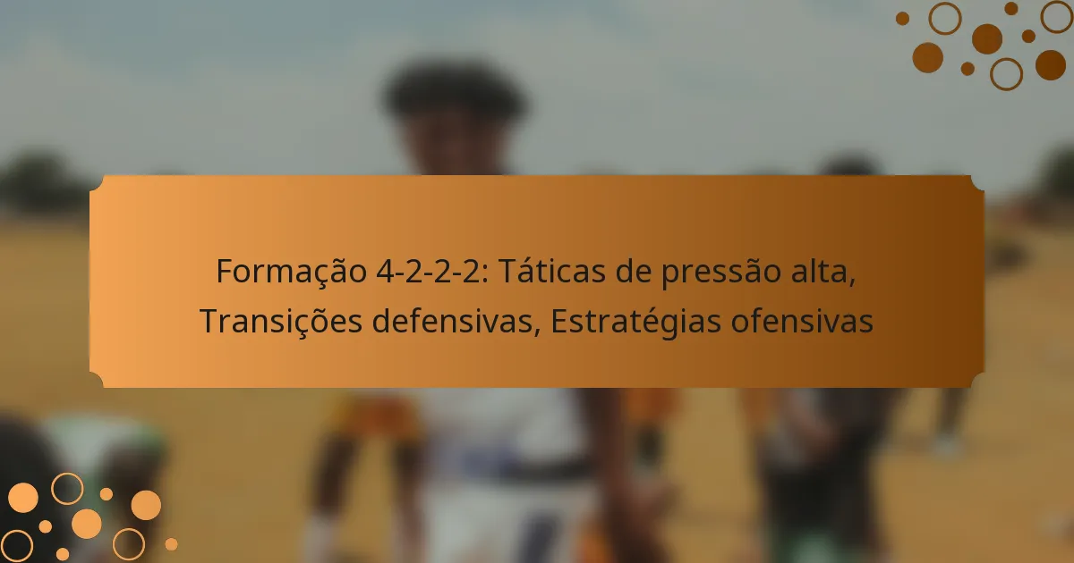 A formação 4-2-2-2 é uma configuração tática no futebol que apresenta quatro defesas, dois médios centrais, dois médios ofensivos e dois avançados. Esta formação enfatiza tanto a solidez defensiva como a flexibilidade ofensiva, permitindo que as equipas pressionem alto enquanto mantêm uma estrutura defensiva forte. Ao implementar táticas de pressão alta e transições defensivas eficazes, as equipas podem recuperar rapidamente a posse de bola e interromper o jogo do adversário, levando a estratégias ofensivas dinâmicas.