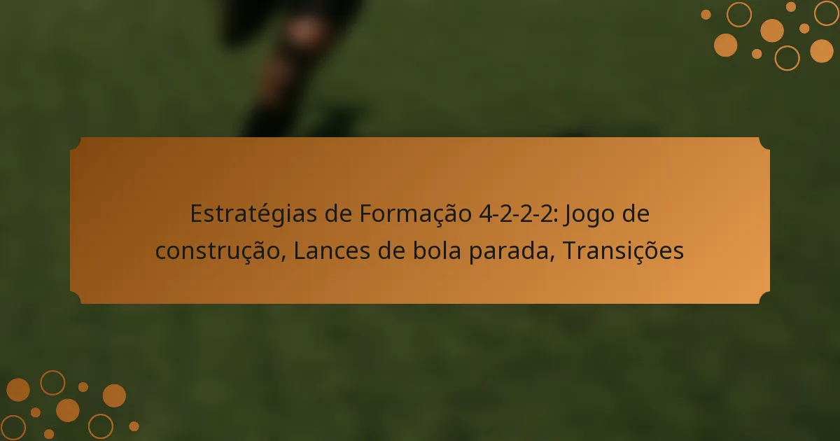 Estratégias de Formação 4-2-2-2: Jogo de construção, Lances de bola parada, Transições